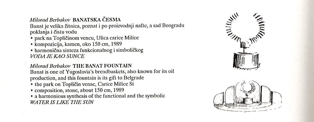 У прилогу достављамо и исечак из књиге Београдска скулптура у слободном простору: Паркови, људи, догађаји Дарка Шаренца у издању НИП “Експортпрес” Београд (1990):