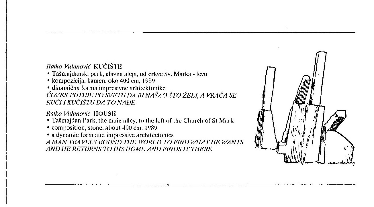U prilogu dostavljamo i isečak iz knjige Beogradska skulptura u slobodnom prostoru: Parkovi, ljudi, događaji Darka Šarenca u izdanju NIP “Eksportpres” Beograd (1990):
