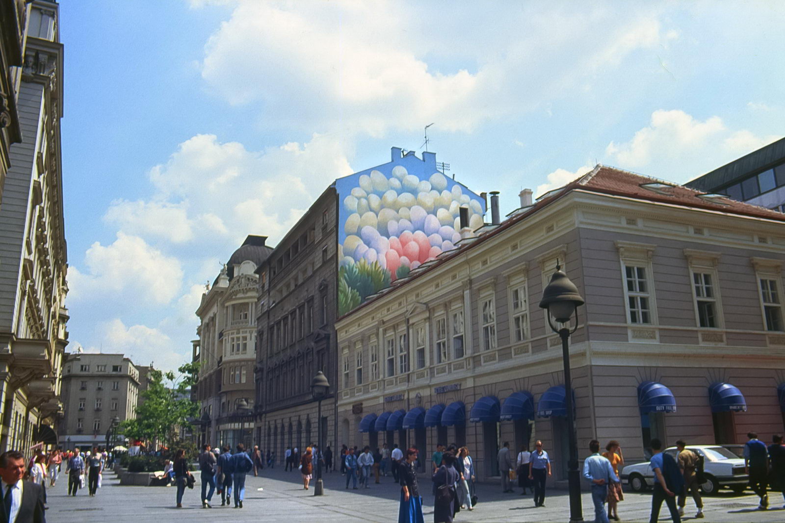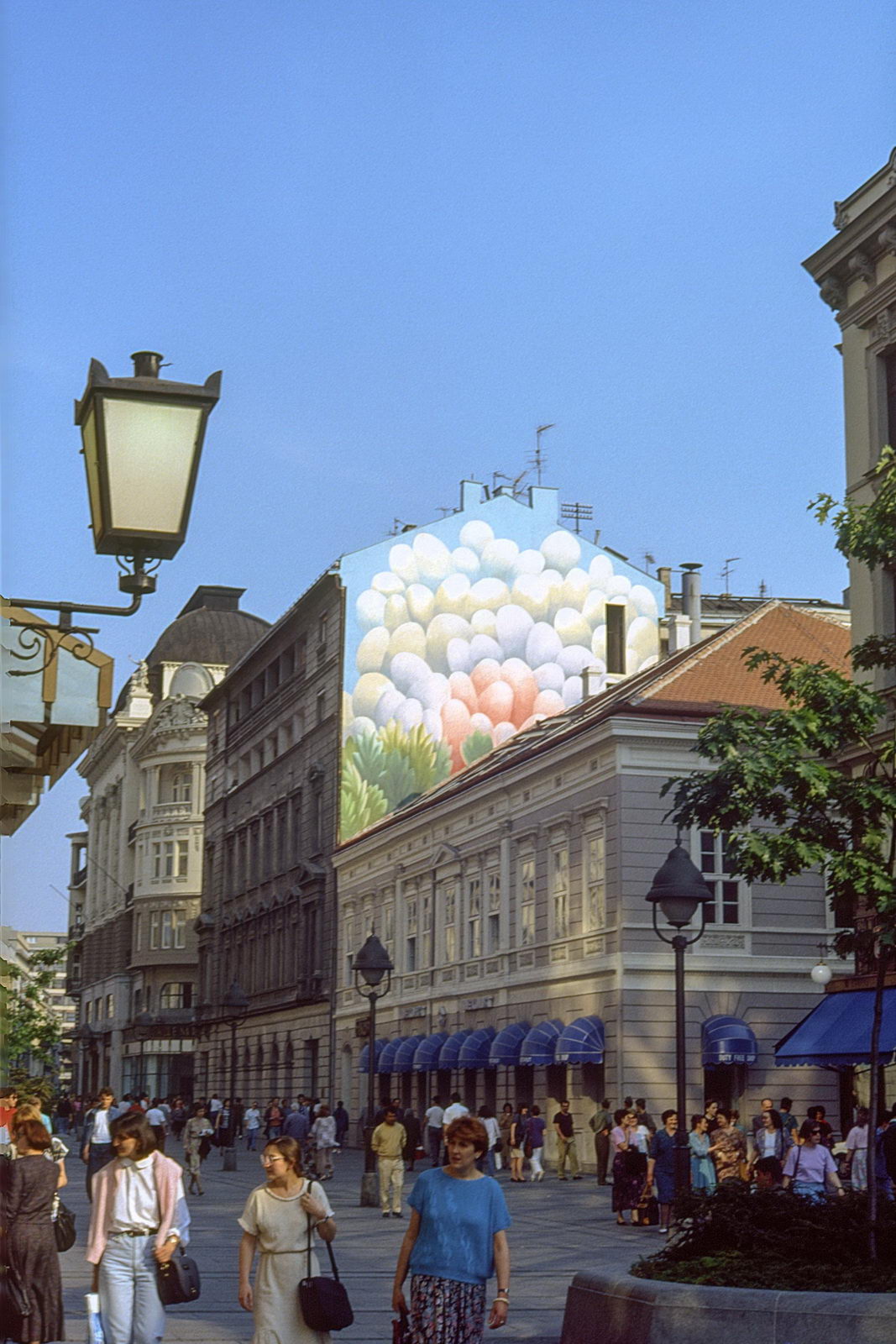 Ovaj mural je delo umetnika Ivana Rabuzina koje je u okviru akcije Stalne konferencije gradova i opština Jugoslavije i Zavoda za zaštitu spomenika kulture grada Beograda ostvareno na jednom od kalkanskih zidova u Knez Mihailovoj ulici u svrhu uređenja grada Beograda prilikom organizacije IX samita Pokreta nesvrstanih, održanog od 4. do 7. septembra 1989. godine. Reč je o poklonu opština hrvatskog Zagorja, Gospića, Karlovca i Siska povodom IX konferencije Pokreta nesvrstanih u Beogradu, a zanimljivost predstavlja podatak da se autor odrekao honorara za ovaj rad. Ova jugoslovenska poklon-galerija imala je za cilj da predstavi solidarnost jugoslovenskih opština i regiona i da bude potvrda prijateljstva i zajedništva. Darovi koji su ukrasili glavni grad su, kako beleži tadašnja štampa, svaki na svoj način predstavljali sredinu odakle dolaze, u nadi da će glavni grad i ubuduće predstavljati „Jugoslaviju u malom”. Kako tadašnja štampa ističe time je „svetu pružen dokaz da unutrašnje svađe i neslaganja, na žalost najčešće svojstvena vrhovnim rukovodstvima, nisu deo svakodnevice radnog čoveka i građanina, kao i to da ukupna snaga zemlje, zalog njenog jedinstva i oopstanka jeste uzajamnost radnih ljudi i građana tako nesebično pokazana ovom prilikom.”