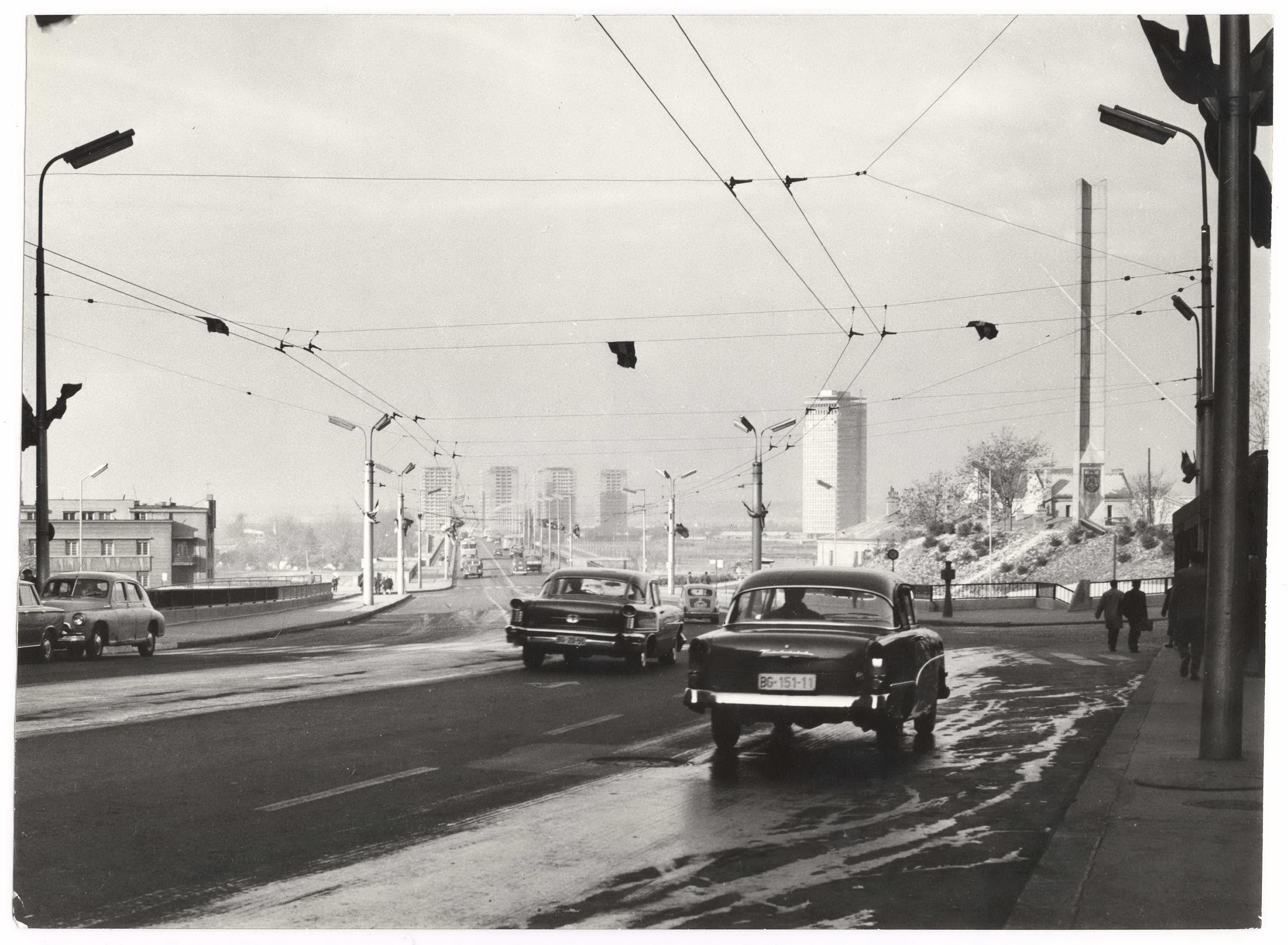 Obelisk je podignut kao privremeni objekat prilikom organizacije I konferencije Pokreta nesvrstanih 1961. godine. Deo je velike akcije uređenja grada za doček i organizaciju čuvene Beorgadske konferencije. Pored ovog obeliska, 1961. podignut je i obelisk na Trgu Marksa i Engelsa , a bio je planiran i treći obelisk u Parku prijateljstva, drugačiji od onog kakav danas poznajemo u tom parku. Ovaj obelisk nalazi se tačno na putu između sala u kojima su držane sednice konferencije, one radne u Narodnoj skupštini, a svečane u novootvorenom SIV-u.