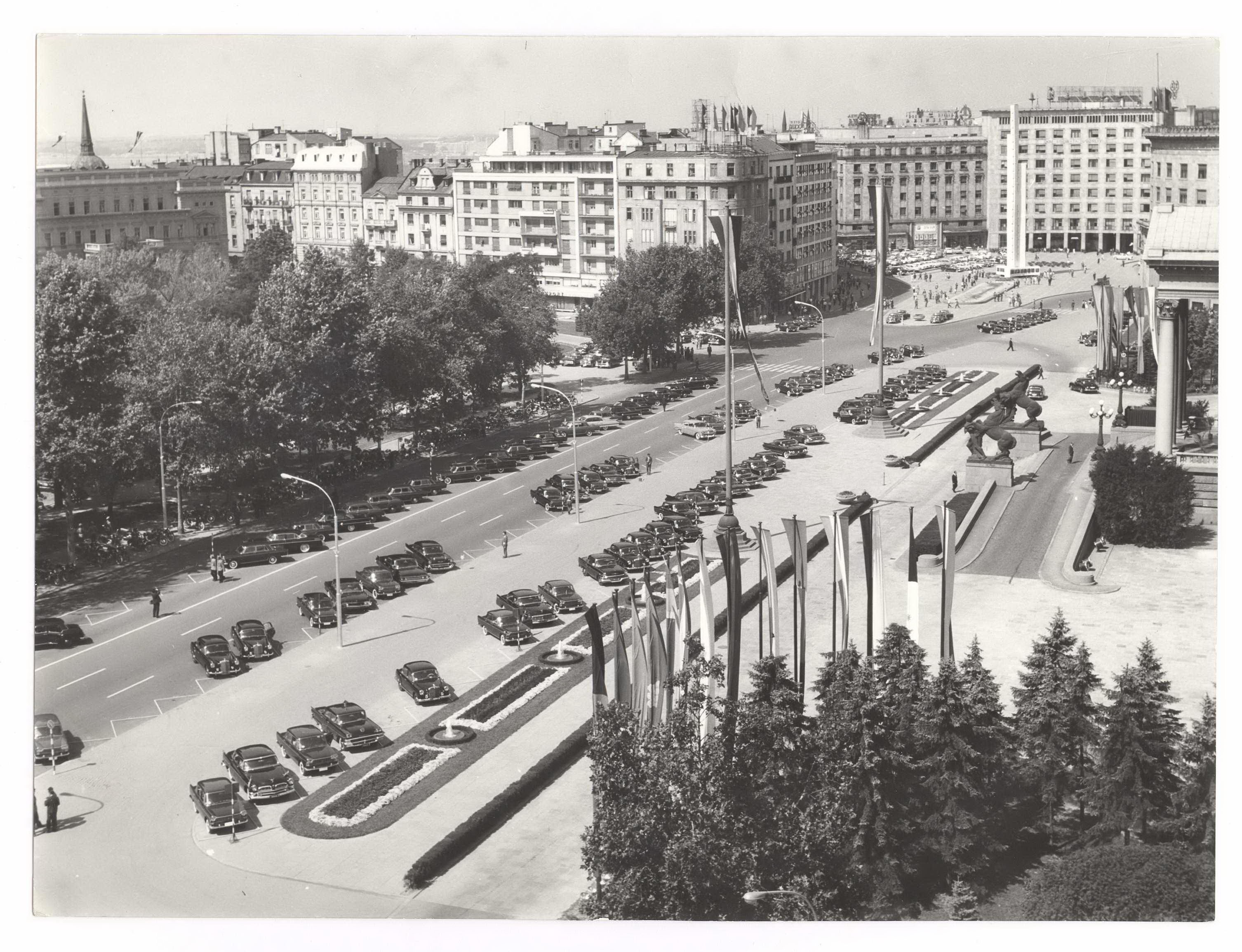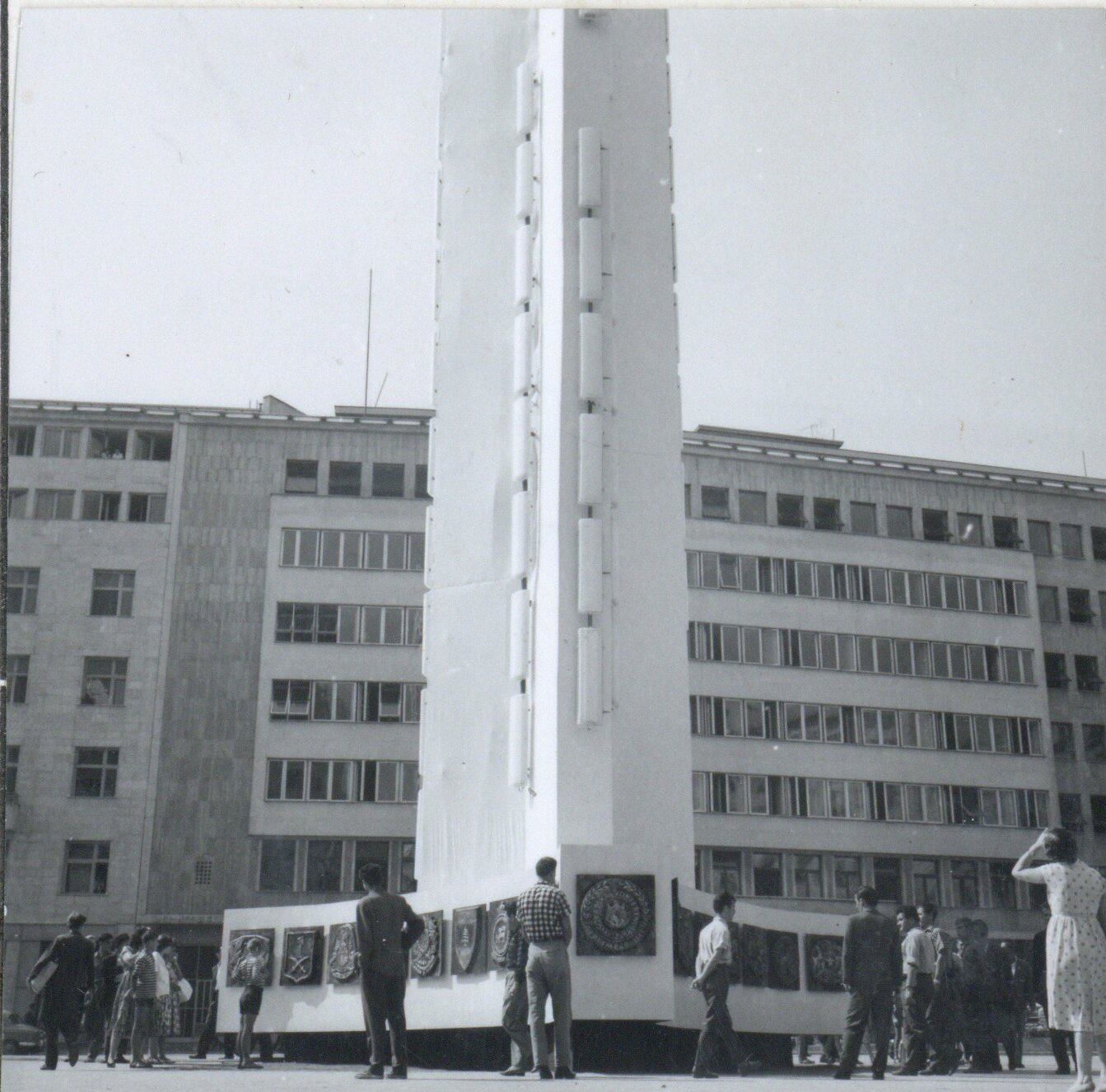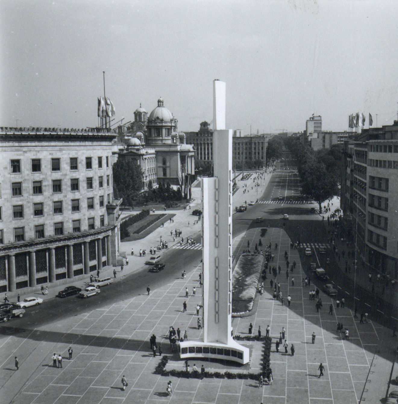 Moderan, platneni obelisk-toranj, kako se navodi u štampi 1961. godine, podignut je kao prigodan i dekorativan element. Jedan od projektanata i rukovodilaca radova bio je arhitekta Branko Bon. Bio je visok 36 metara, a po celoj dužini bila su postavljena rasvetna tela, za šta je upotrebljeno oko 450 neon-cevi. Radovi na postavljanju bili su povereni preduzeću za metalnu konstrukciju „Partizan”, građevinskom preduzeću „Napred” i preduzeću za dekoracije „Forum iz Beograda”. Pred konferenciju, par hiljada građana posmatralo je spektakl svetlećeg obeliska visokog 36 metara. Ovaj obelisk-toranj bio je postavljen na jednakoj udaljenosti od Doma sindikata, u kome je bio smešten Centar za štampu, i Narodne skupštine, u kojoj su se održavale plenarne sednice.