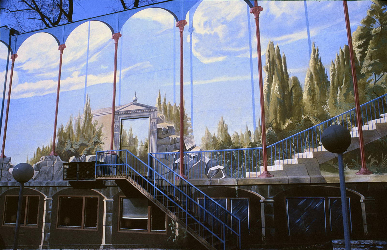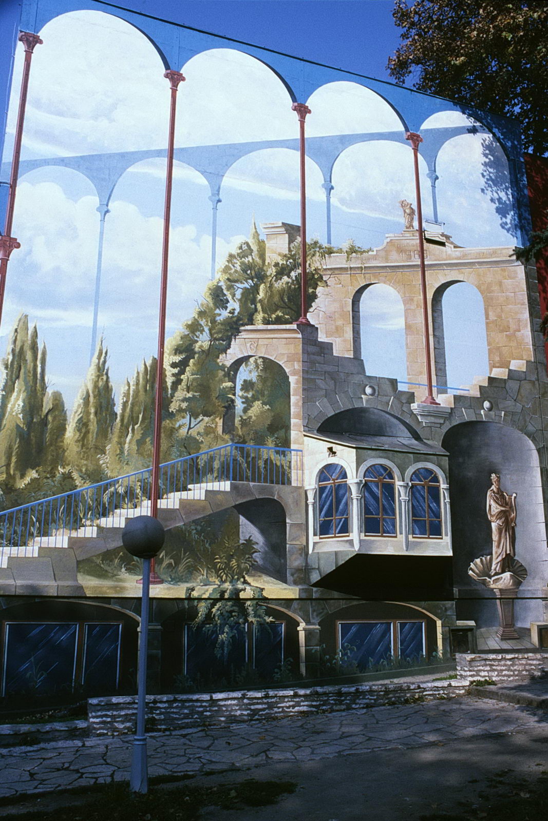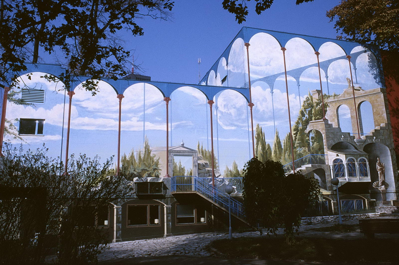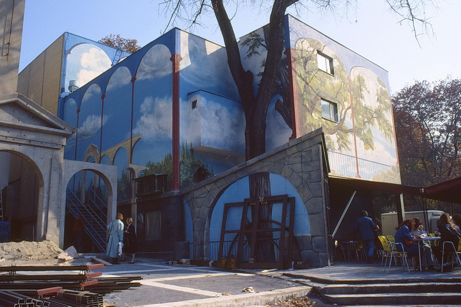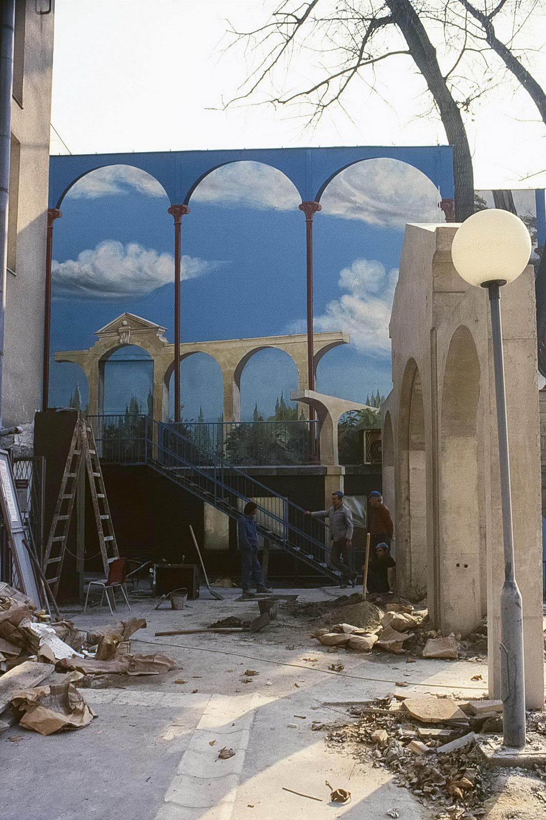 Skulptura koja se i danas nalazi ispred Jugoslovenskog dramskog pozorišta pod nazivom Ranjenik ili Streljanje rodoljuba delo je Vanje Radauša iz 1948. godine. U okviru akcije Stalne konferencije gradova i opština Jugoslavije i Zavoda za zaštitu spomenika kulture grada Beograda u svrhu uređenja grada Beograda prilikom organizacije IX samita Pokreta nesvrstanih, održanog od 4. do 7. septembra 1989. godine na ovoj skulpturi su izvršeni konzervatorski radovi. Tehnička dokumentacija o tim radovima dostupna nam je iz Zavoda za zaštitu spomenika kulture grada Beograda. Iz iste dokumentacije koju možete videti ovde, vidljiv je i izgled murala koji je izradio Slobodan Jevtić Pulika kao poklon međuopštinskih regionalnih zajednica Srbije i Kosova povodom organizacije IX konferencije Pokreta nesvrstanih. Ova jugoslovenska poklon-galerija imala je za cilj da predstavi solidarnost jugoslovenskih opština i regiona i da bude potvrda prijateljstva i zajedništva. Darovi koji su ukrasili glavni grad su, kako beleži tadašnja štampa, svaki na svoj način predstavljali sredinu odakle dolaze, u nadi da će glavni grad i ubuduće predstavljati „Jugoslaviju u malom”. Kako tadašnja štampa ističe time je „svetu pružen dokaz da unutrašnje svađe i neslaganja, na žalost najčešće svojstvena vrhovnim rukovodstvima, nisu deo svakodnevice radnog čoveka i građanina, kao i to da ukupna snaga zemlje, zalog njenog jedinstva i oopstanka jeste uzajamnost radnih ljudi i građana tako nesebično pokazana ovom prilikom.”
