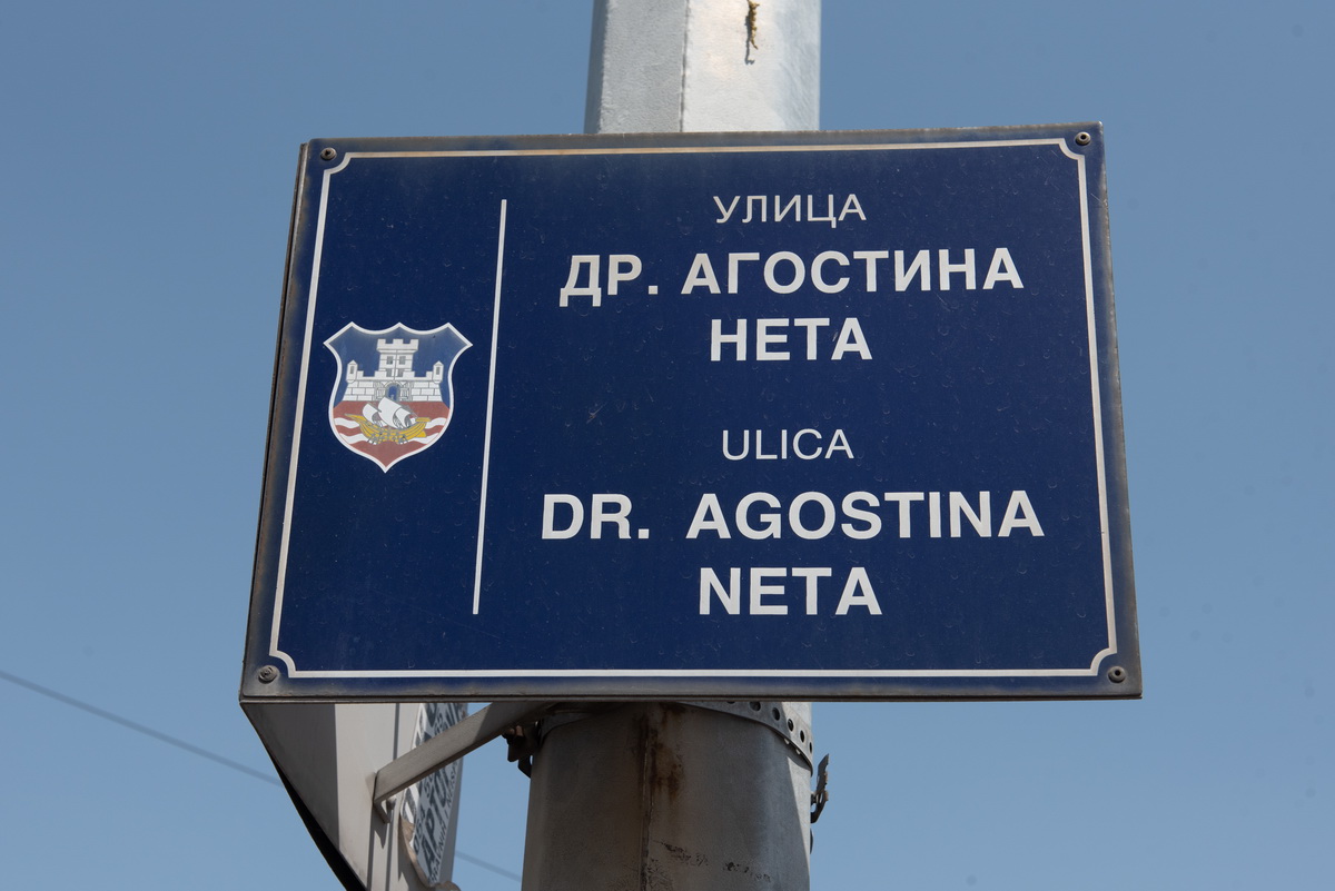 Улица Агостина Нета носи овај назив у континуитету од 1982. године. На углу ове улице и Јурија Гагарина налази се и спомен-плоча посвећена овом чувеном политичару, револуционару, песнику, вођи анголског народа у борби против португалске колонизације. Агостино Нето (1922-1979) био је од 1962. председник Народног покрета за ослобођење Анголе, а од проглашења независности ове земље 11. 11. 1975. био је њен председник и врховни командант оружаних снага. Прве стихове објавио 1947; добитник је награде „Лотос“ Удружења књижевника земаља Азије и Африке (1970). Најчешће пева о борби Анголаца против колонијализма. Песме су му преведене и код нас (Очију без суза, 1968, Трагајући за животом, 1978).