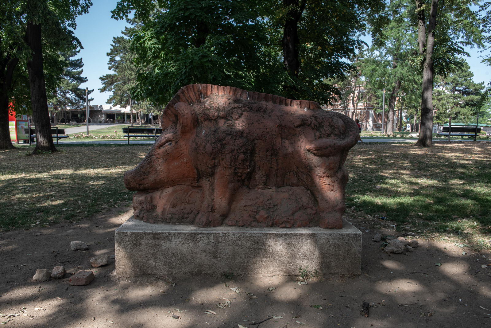 Skulptura Vepar je poklon opštine Kikinda, a 2021. godine je pronalazimo u relativno dobrom stanju, blizu glavne promenade u Tašmajdanskom parku. Pored svakog poklona u okviru ove gradske galerije na otvorenom nalazila se bronzana ploča, rad Kolje Milunovića, na kojoj su bili ispisani podaci o delu, autoru, darodavcu i IX konferenciji Pokreta nesvrstanih. Namera je bila da ovaj bronzani detalj ostane trajno obeležje lepog povoda za poklon i čitave akcije koju je pokrenula Stalna konferencija gradova i opština Jugoslavije. Bronzane ploče, kao i svi radovi, svečano su otkriveni 25. avgusta 1989. godine. Ta nesvakidašnja predaja poklona bila je propraćena muzičkim i dramskim programom, a završena je zdravicom uz sevdalinke u Skadarliji. Danas, u većini slučajeva bronzanih ploča uz radove nema.